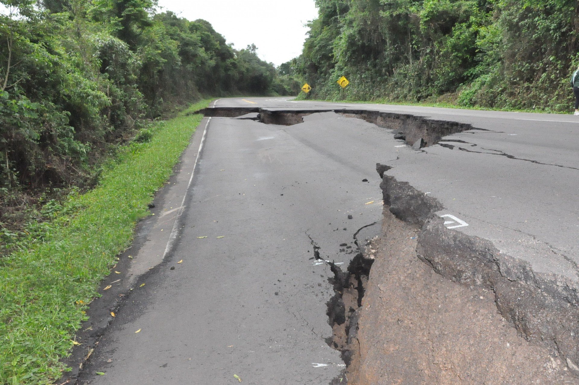 Na localidade de Sete Colônias, em Farroupilha, a RS-122, no quilômetro 43, está parcialmente interrompida desde o dia 15 de outubro. A estrada está com rachadura de cerca de 40 metros no sentido Farroupilha-Porto Alegre.